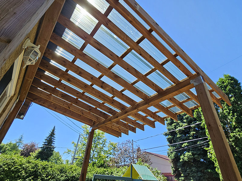 Nos produits se présentent sous la forme d'une structure de poteaux, de poutres et de chevrons lesquels seront installés des lattes. Pour obtenir de l’ombre ou embellir la structure, nous pourront habiller celle-ci avec des plantes grimpantes, toiles, feuilles de tôle…